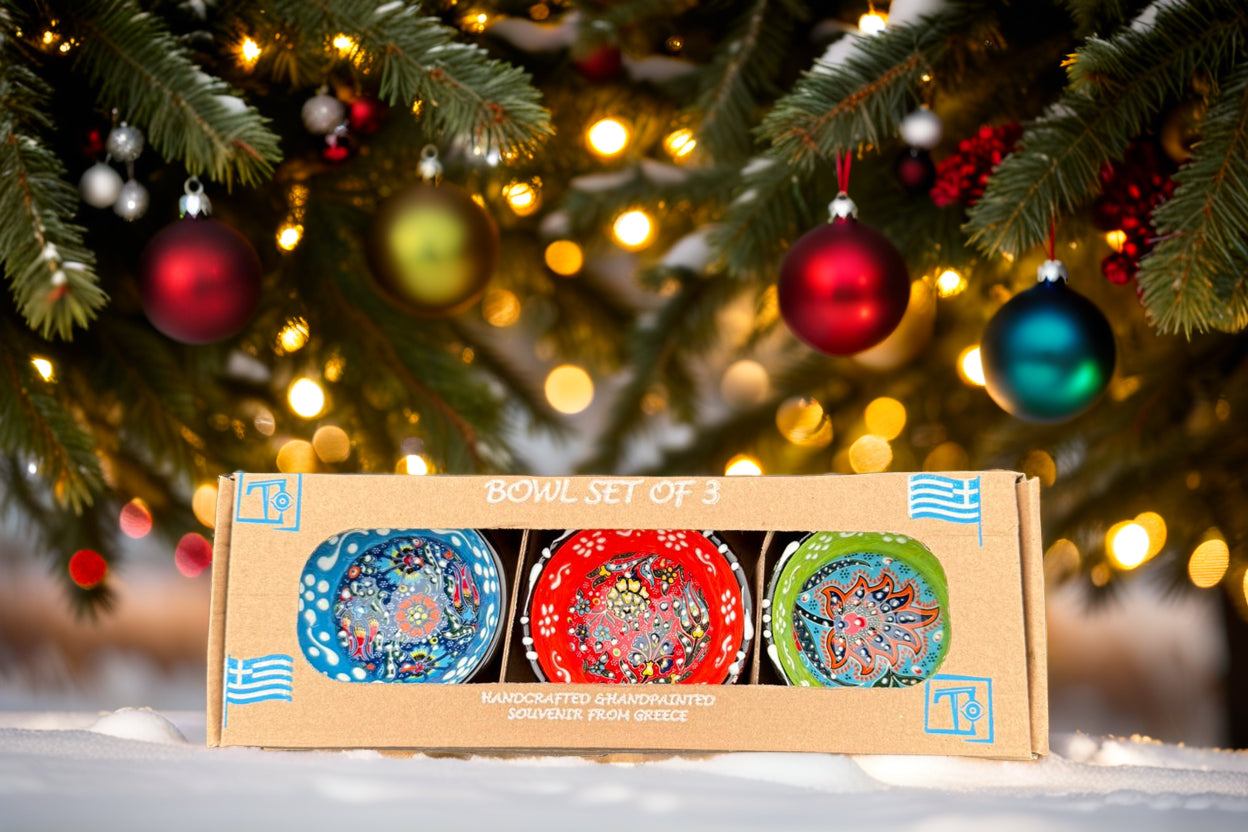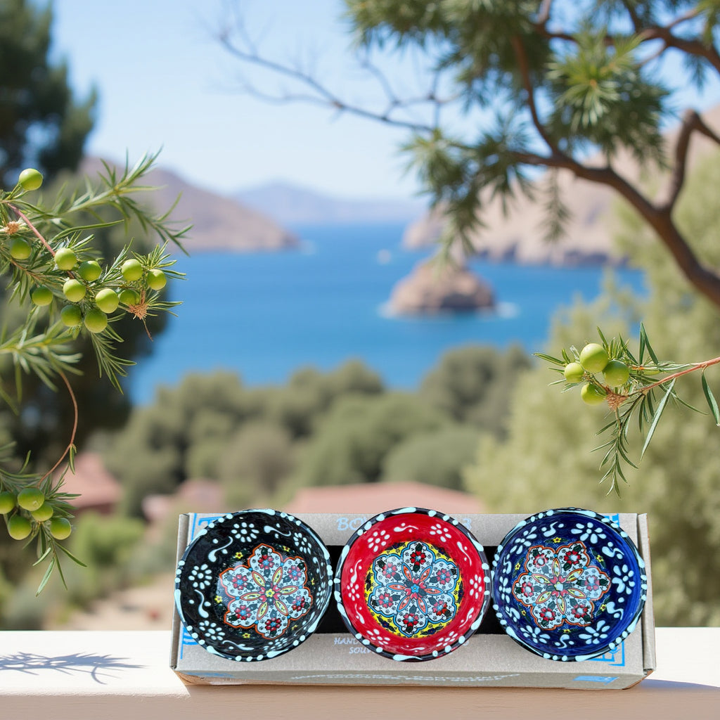Handgemaakte & Handbeschilderde Keramieken Schaaltjes uit Rhodos (Set van 3)