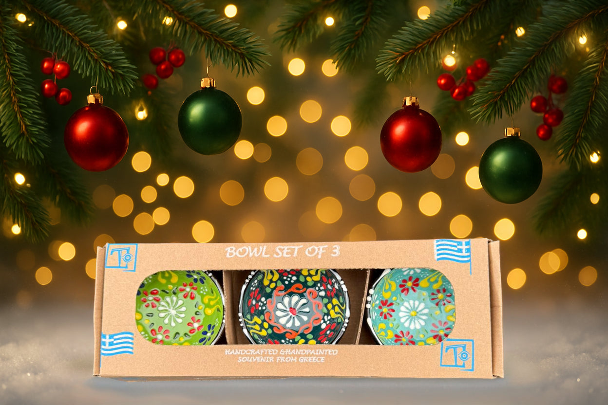 Handgemaakte & Handbeschilderde Keramieken Schaaltjes uit Rhodos (Set van 3)
