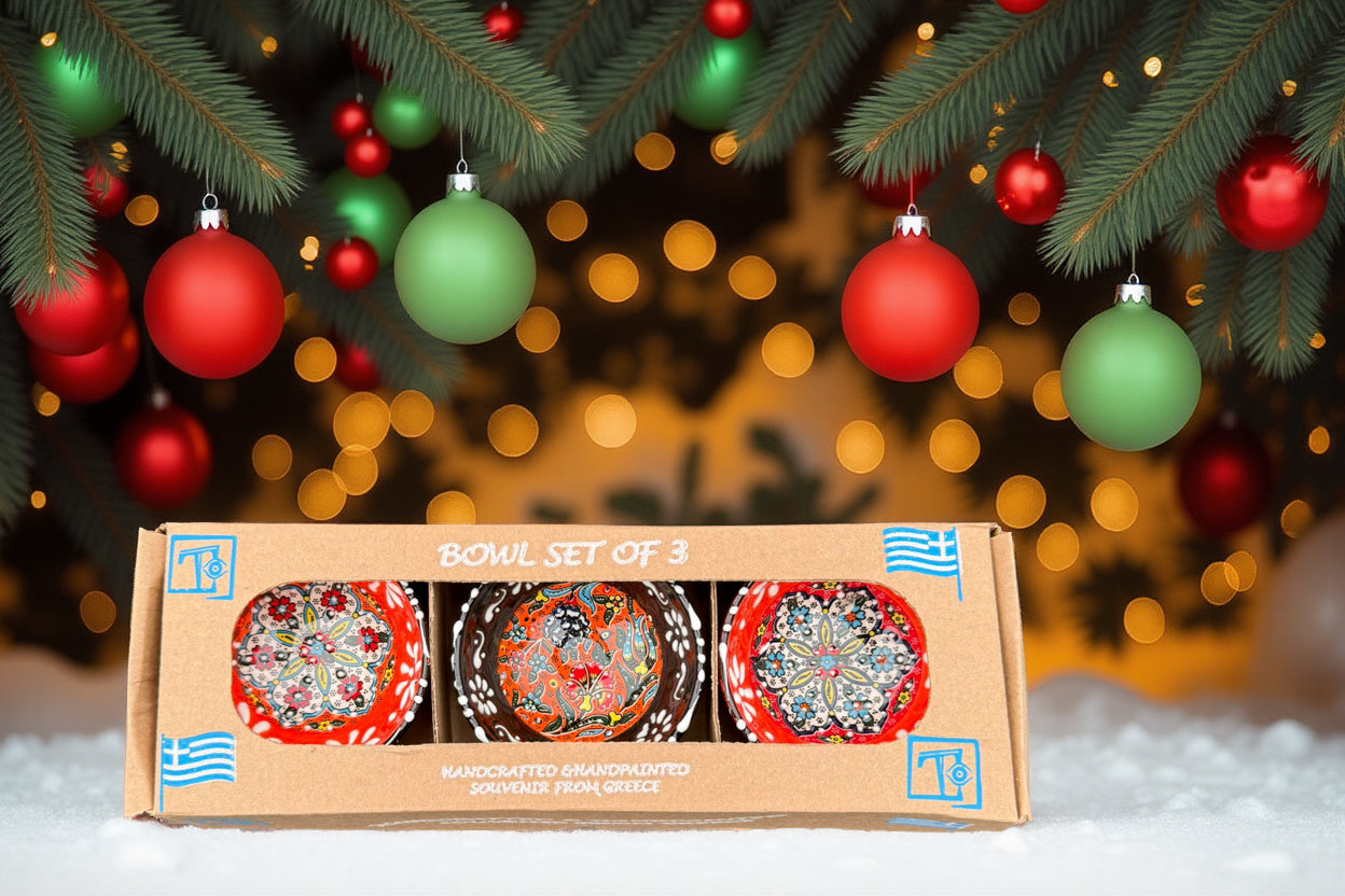Handgemaakte & Handbeschilderde Keramieken Schaaltjes uit Rhodos (Set van 3)