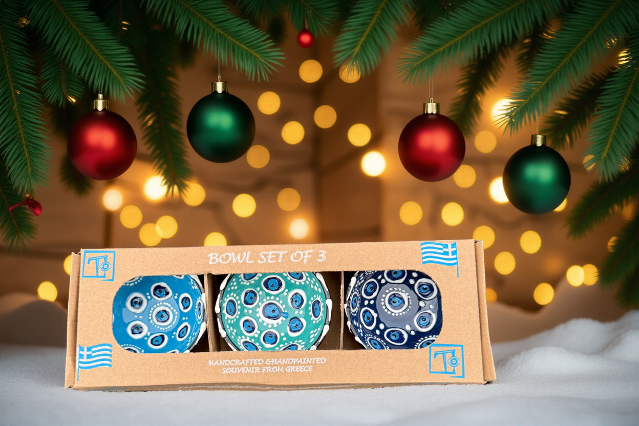 Handgemaakte & Handbeschilderde Keramieken Schaaltjes uit Rhodos (Set van 3)