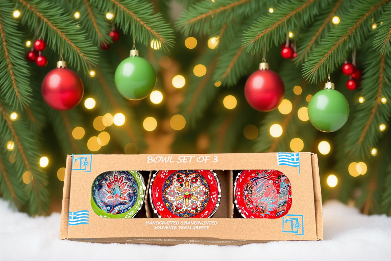 Handgemaakte & Handbeschilderde Keramieken Schaaltjes uit Rhodos (Set van 3)